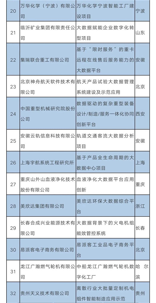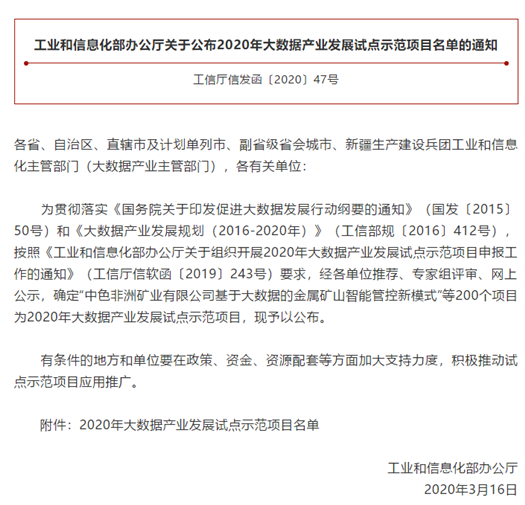 2020年大数据产业发展试点示范项目