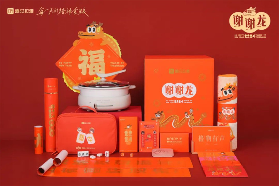 喜马拉雅2024新年礼盒包装设计以谢谢龙为设计主题,谢谢龙同音「谢谢你(侬)」,期待神龙带来好运。