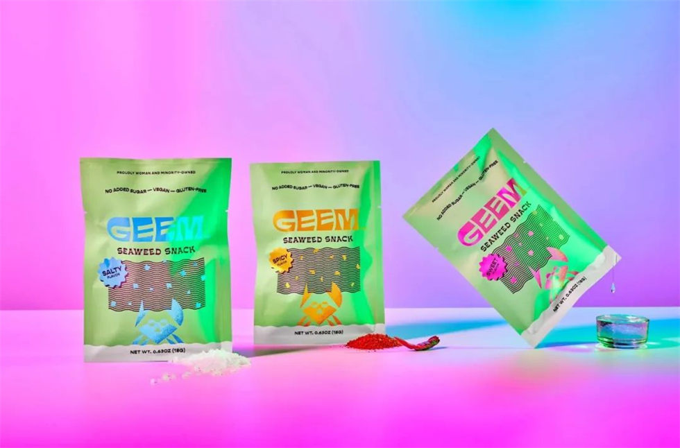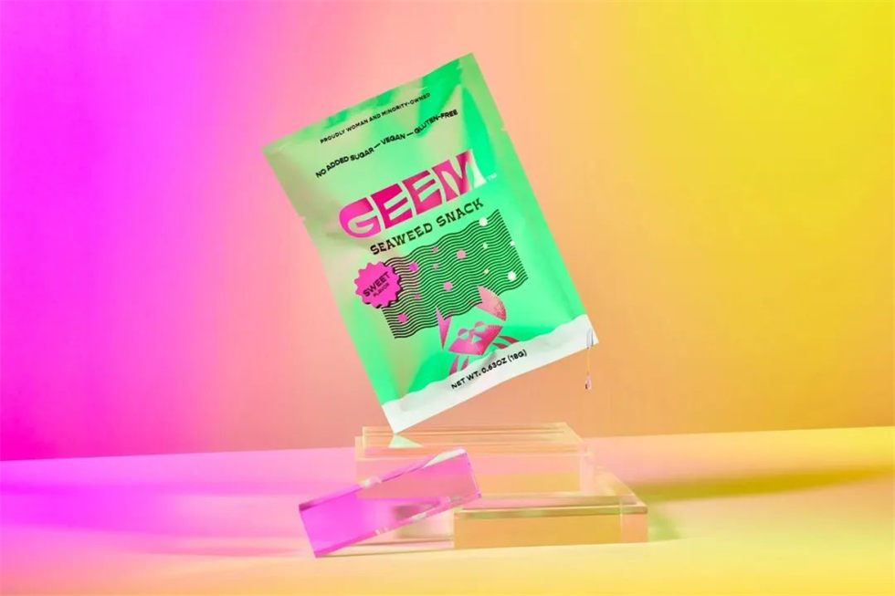 GEEM是一个新兴的海藻零食品牌。这个名字来源于韩语单词“gim”,指的是一组可食用的干海藻植物。该品牌的目标是吸引追求与众不同、更注重品牌透明度的年轻一代。