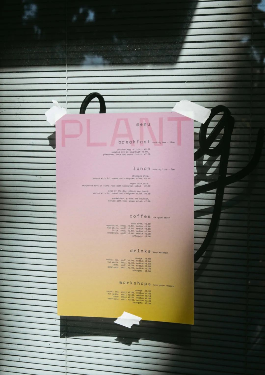 PLANT水培咖啡馆品牌设计使用自然不自然的色调与咖啡馆名称的预期色调相去甚远。网格细节代表了即使是经验最丰富的园艺师也能预料到的轻微不规则性。