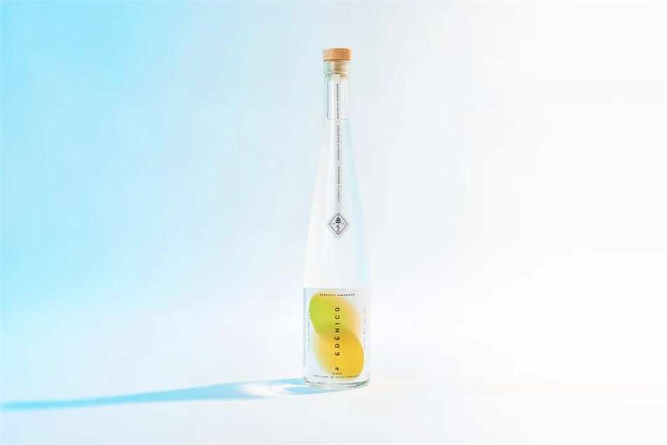 墨西哥Edénico果酒包装设计,Edénico采用不同的水果蒸馏酿制而成的果酒,酒精度达42度。分别有金枪仙人掌、番石榴、芒果等口味。在果酒包装瓶贴设计上主要通过清新明快的色彩表现,精致的文字排版尽显精致优雅。