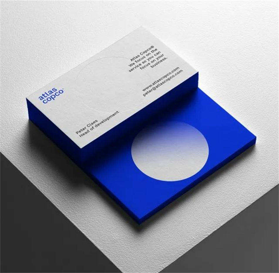 蓝色渐变的圆形标志设计给人以科技星球的感觉,虽然是重工业企业(阿特拉斯·科普柯的空气压缩机是全球最先进的),这套新的品牌设计形象传递出先进、精密、理性的品牌调性。